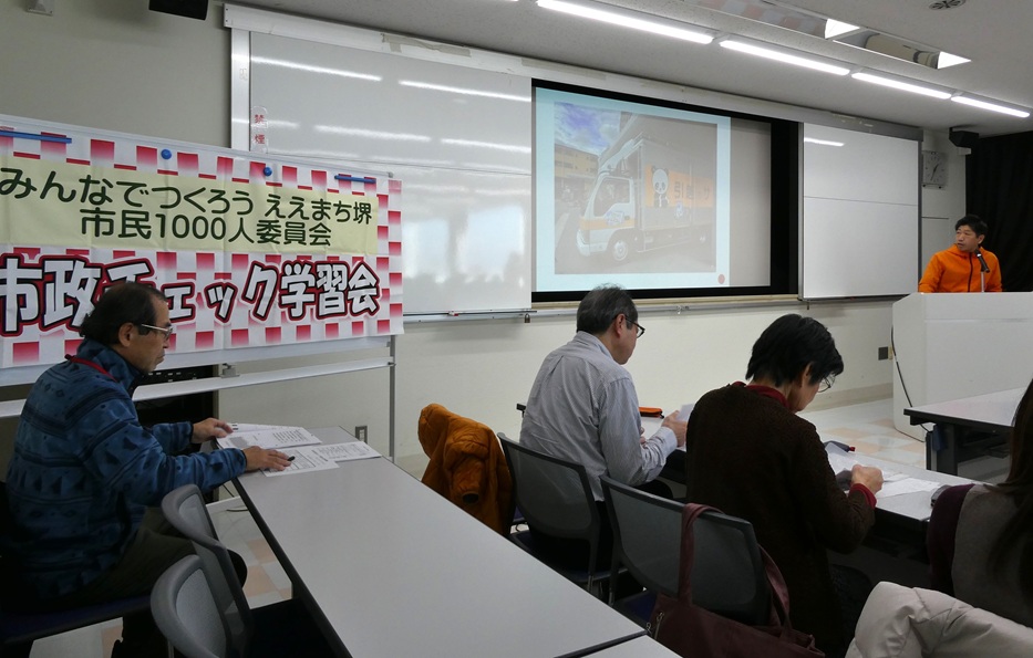午後、産業振興センターで催された市民1000人委員会の市政チェック学習会に参加。