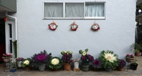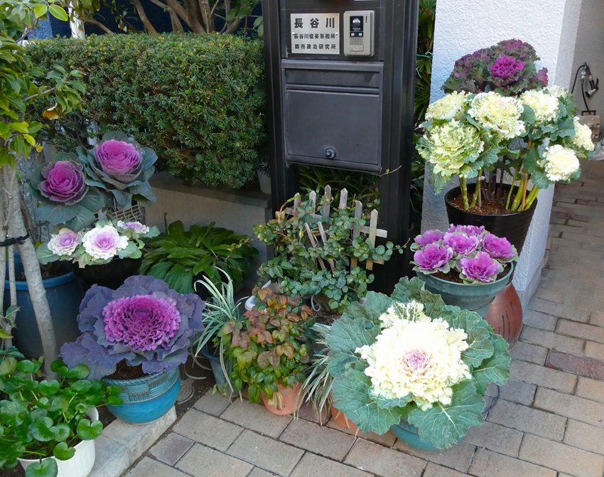 富田林の農家(前回の仕入れ先とは別)の畑の前を通りかかったら、ハボタンを格安価格で販売中でした。買い求めて帰り、午後からまた植え付け作業。事務所前がさらに賑やかになりました。