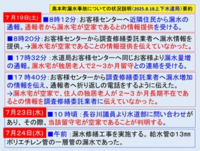 一昨日の大綱質疑での2つ目の議論は、7月23日の朝、奥本町にお住まいの方から、息急き切ってご相談があった水道漏水事故です。