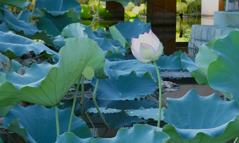 6日ぶりの大泉緑地。もう終わったと思っていたハスの花を、中央休憩所テラスの側で見つけました。開花数が多かったはすみ橋北側付近でも大泉池は葉で覆い尽くされており、おそらく、これが最後の一輪だと思われます。池端の林では秋ゼミの声が衰え、草虫の季節となりました。