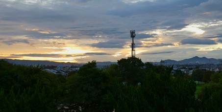 早起きして大泉緑地へ。日の出が楽しみだったのですが、東空は雲がいっぱい。雲間の光を撮りました。他方、金岡口噴水前のゴリちゃんは万博衣装を脱いで変身。「大泉緑地産」の米袋(30㎏)を携えていました。近くにいた人にお尋ねすると、昨日メタモルしたようです。事務所に戻って健康福祉委員会の準備。パワーポイントスライドの作成に打ち込みました。
