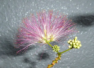 帰宅後、雨に濡れながら園芸作業。昨日から観察中のネムは、つぼみから雄しべが噴き出すような姿を見ることができました。撮影時刻=14時52分。