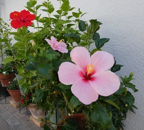 ▼いま、事務所前の主役はハイビスカス。