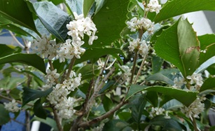 事務所前の金木犀が花を終え、銀木犀が満開になりました。金木犀ほど自己主張をしない上品な香りを漂わせています。