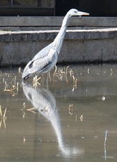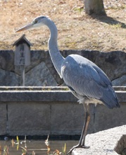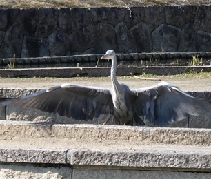 今日も気候に誘われ、お昼前から大泉緑地へ。ジャンバーを脱いだ背中が陽射しで焼けそうに感じるほどの暖かさを満喫しながら、いつもと少しコースを変えてみました。中村町に近い木橋小径を通って頭和泉池を一周。テレビニュースにもなる早咲きのヒマラヤザクラすでに花を終えていましたが、ヘラブラ釣りの釣り人と会話したりしながらゆっくりと歩きました。カキツバタ園では、前回も見たアオサギが展示用小屋前の池にたたずんでいます。しばらくはまったく動こうとしなかったのですが、少し歩いて立ち止まる動作を繰り返した後、羽を広げて遊歩道に飛び上がり、次の池に移ろうとする姿を観察できました。