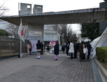 今日、その写真展を訪ねる途中、孫の卒業式が行われた高校にも立ち寄りました。式後の行事も終わったところで、校門付近では記念撮影をする卒業生や保護者の行列ができています。折良く、孫に出会えて祝福。部活に勤しんだプールや教室の風景も見ることができました。
