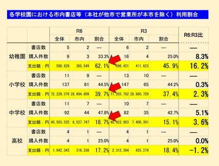 今日の予算委員会第2分科会では、まず市立学校園の図書・資料の購入先について質しました。 市教委提供の資料によると、購入費総額の3年前との比較では、幼稚園、小学校、中学校で市内書店の利用割合が増加しています。 ただし、各校の購入先を調べてみると、市外業者である「(株)図書館流通センター」(TRC)に頼っている状況も見えます。 改めて詳細な分析が必要と考え、評価は差し控えました。