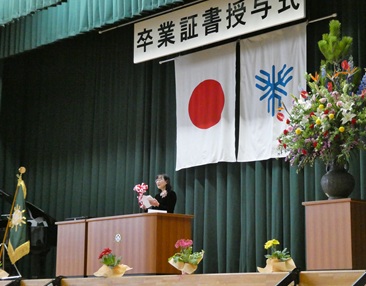 「どれもバラ科の植物ですが、桜は梅になれないし、梅は桃になれず、桃もスモモにはなれません。それぞれの花や木が人々を楽しませる」。「皆さんも、一人ひとりが自分の良さを持っています。オンリーワン。自分にしかない個性のよさを伸ばし、大切な人生を築いてほしい」。「自分を大切にし、まわりの人も大切に」・・・。卒業生はもとより、式に参加した人々の心に響きました。